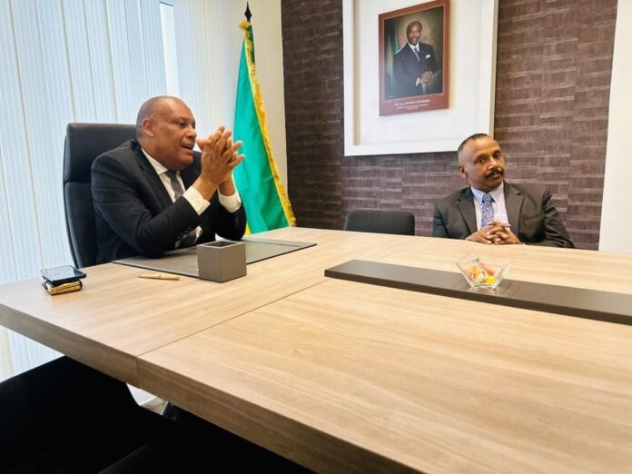 Séance de travail lundi 27 mars 2023 entre le ministre de l’Énergie et des Ressources Hydrauliques, Oswald Séverin Mayounou et le nouvel ambassadeur du Sri Lanka au Gabon, Kana V. Kananathan. A l’ordre du jour, le renforcement de la coopération bilatérale entre le Gabon et le Sri Lanka, notamment dans les domaines de l’énergie.